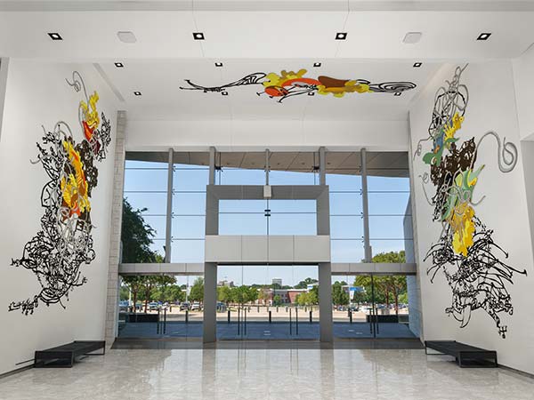 Made of powder-coated aluminum, vinyl, and acrylic paint, Matthew Ritchie’s Line of Play (2009) transforms the age-old medium of drawing. The work becomes a metaphor for the many ways people make sense of just about everything from our surroundings to life’s purpose to whatever might lie beyond. In Ritchie’s hands, art is an ongoing experiment, an ever-expanding inquiry we puzzle over as we discover new ideas, change our minds about old ones, and come up with more questions.