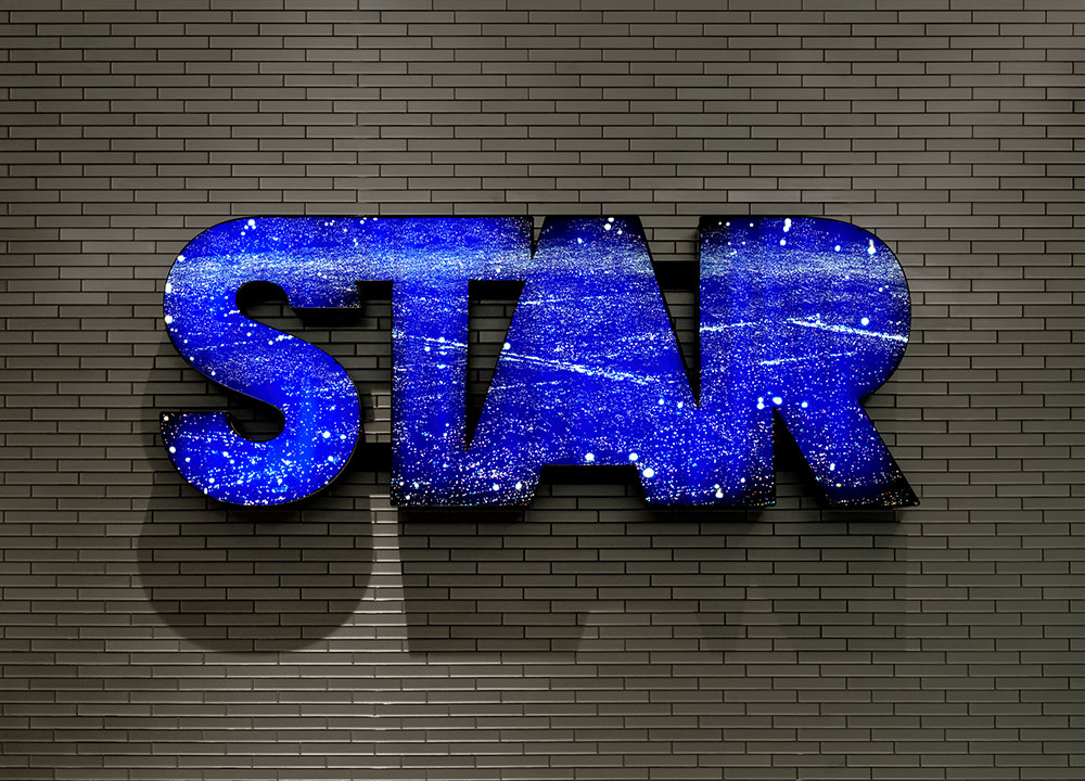 From across the hall, it is easy to read Aitken’s ten-foot-long word. But “star” refers to many things, from the heavenly bodies twinkling in the night sky to actors and athletes, who shine for different reasons. “Star” is a noun and a verb, a word that describes people and what they do when they become the focus of our attention.